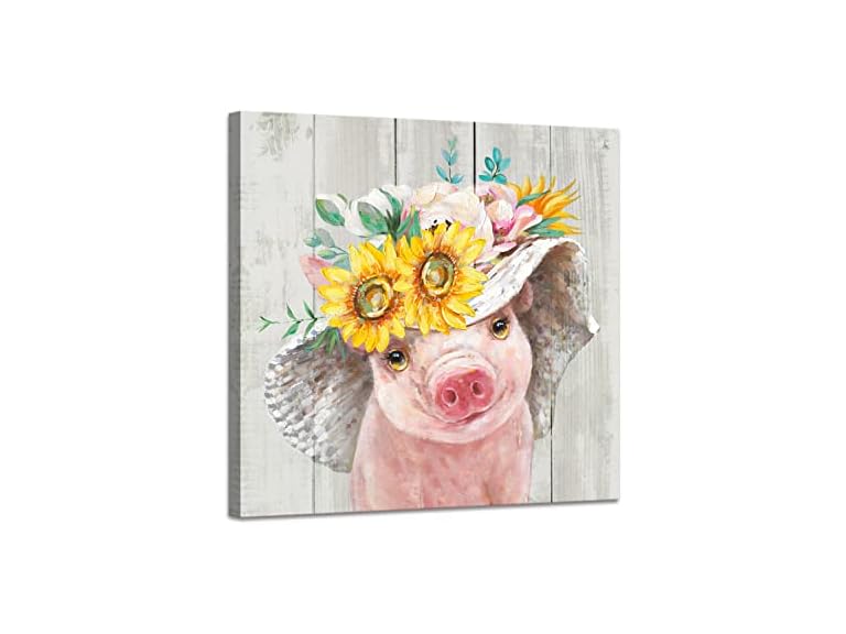 - Design Ideas: classic farmhouse themed image - a funny pig wearing flower hat, This imaginative painting makes you feel relaxed and happy.