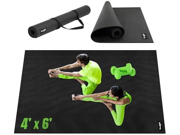 - (1) YES4ALL Large Exercise Mat for Home Gym, 6'x4'x7mm Thicker Foam Fitness Workout Mats, Gym Flooring for Cardio, Shoe-Friendly