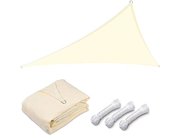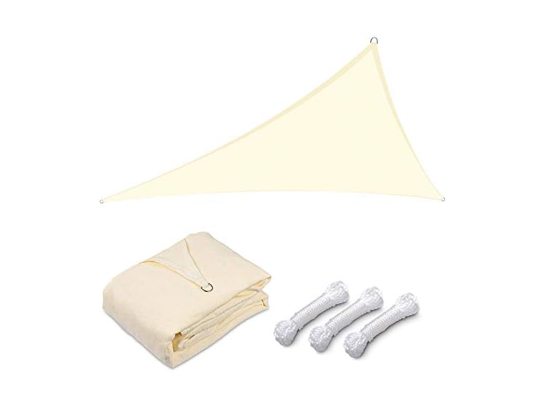 - [Durable in Use]: Triple stitched seam reinforces the edge to prevent fraying and ripping; Curved triangle shape helps the sail to keep tight; Heavy-duty nylon ropes included; Anti-ager composition added for long time service.