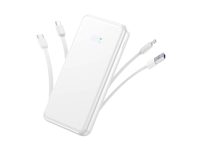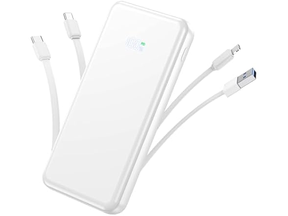 - 50000mAh Portable Charger With Built In Cables: No More Tangled Wires! Charge ANY device instantly with built-in 4 cables (Type-C/IOS/Micro/USB-A)—plus 3 extra ports (1x PD Type-C, 2x USB-A). Perfect for iPhone16/15/14/13/12/11 all series, iPad series, for Samsung s23/s22/s21/s20, Google Pixel and other Android smartphones, tablets,and more!