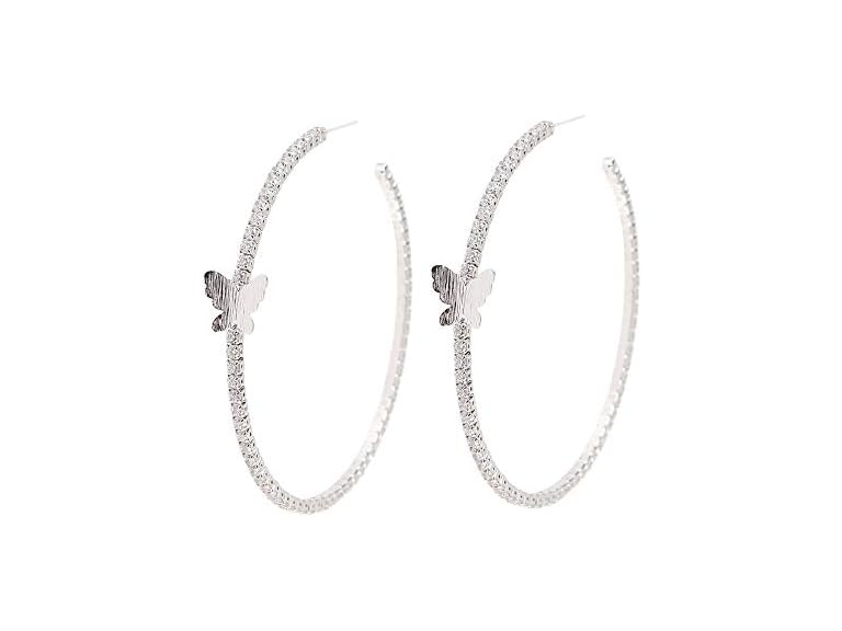 - (1) Large Zirconia Hoop Earrings for Women - YILIBAO (2019) Hypoallergenic Hoops Circle Earrings with Brushed Butterfly and Silver Needle, Christmas, Valentine’s Day, Birthday Jewelry Gifts, Silver