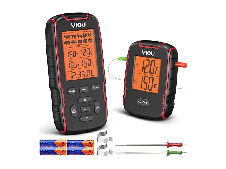 - (1) YIOU Wireless Meat Thermometer for Cooking, Digital Meat Thermometer with 2 Probes, 500FT Ultra Accurate & Fast Food Thermometer for Oven, Smoker, Red