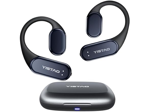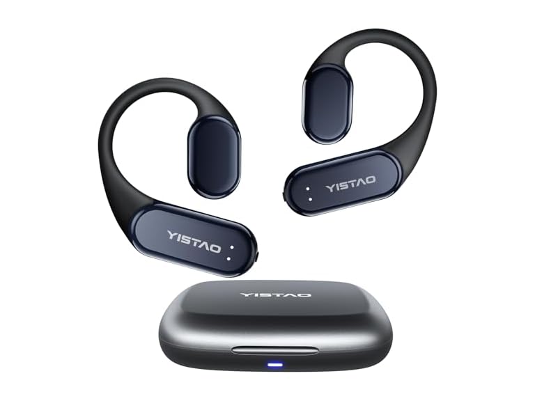 - (1) Yistao True Bone Conduction Headphones, Open Ear Earbuds with Ear Hooks, Up to 60 Hours Playtime with Charging Case, Bluetooth 5.3, IP68 Waterproof, for Running, Yoga, Gym, Sports