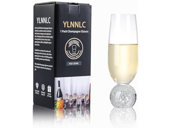 - (1) YLNNLC 1Pack Crystal Lead-Free Champagne Flute, 7oz Reusable Clear Champagne Glasses With Bubbles Base, Prosecco Wine Flute, Mimosa Glasses, Ideal Wine Gift for Birthday Wedding Party