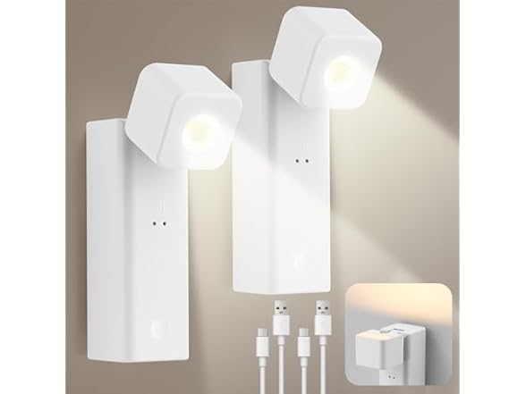 - Unique & Multifunctional Wall Lamp with Adjustable Angle: Unique in both form and function, our white double-sided battery powered wall sconce brings together a reading light and a night light—all housed in a compact design with a 270° rotating, 180° tilting head that puts light exactly where you need it. Whether you're immersed in a late-night novel, setting a relaxing mood, or adding a soft glow to your space, this lamp is your perfect indoor companion.