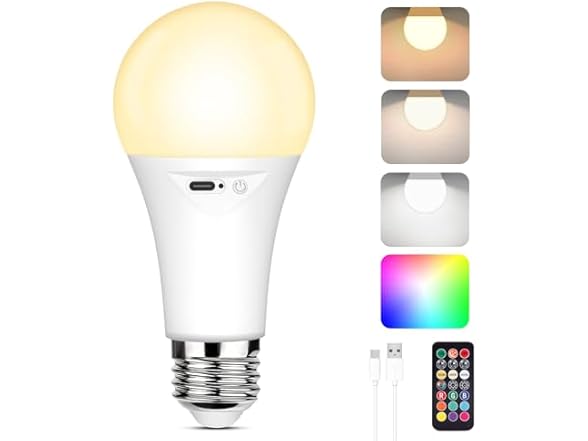 - (1) Yochoice Rechargeable A19 Light Bulb, Battery Operated LED Bulb with 9 Colors Selectable & 3 Timer, Dimmable Light Bulb for Non-Hardwired Lamps with Remote Control