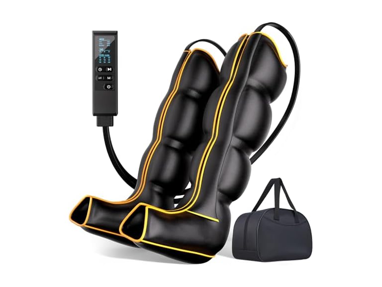 - Air Compression Massage System: This leg massager delivers professional-grade muscle relaxation. 4 independent airbags gently inflate and deflate in a rhythmic wave motion, targeting the feet, calves, knees, and thighs respectively, mimicking professional massage techniques to promote blood circulation, accelerate metabolism, and relieve muscle stiffness after exercise.
