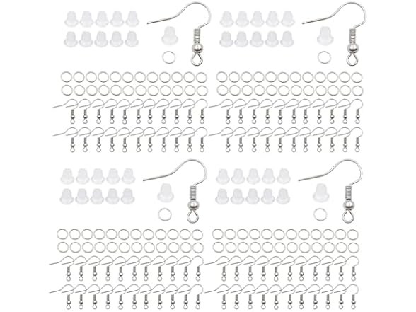 - (1) Youdiyla Earring Making Supplies Kit, 100 Pieces Fish Hook Earrings with Jump Rings and Rubber Backs, Silver (8548+9159+6mm白K单圈×300)