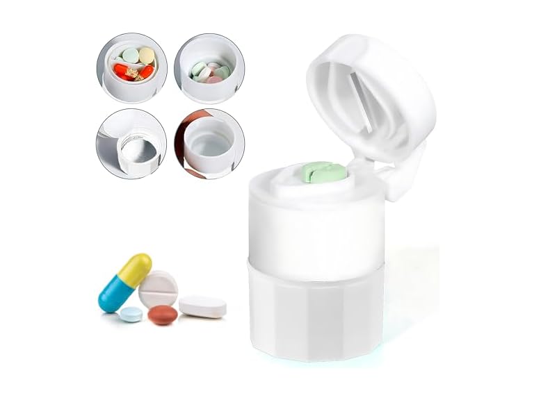 - YourRx Pill Crusher and Grinder for Small Pills – 4-in-1 Tablet Cutter, Grinder, Storage, Travel Cup – Multifunction Medicine Grinder for Fine Powder and Vitamins – Compact and Portable Design (White)