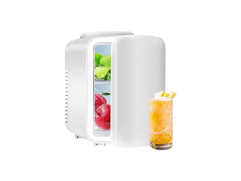 (1) YSSOA Portable Mini Fridge, 4L Cooler/Warmer Compact Refrigerators with 12V DC and 110V AC Cords, for Food, Drink, Skincare, Office, Bedroom, Dormitory, White