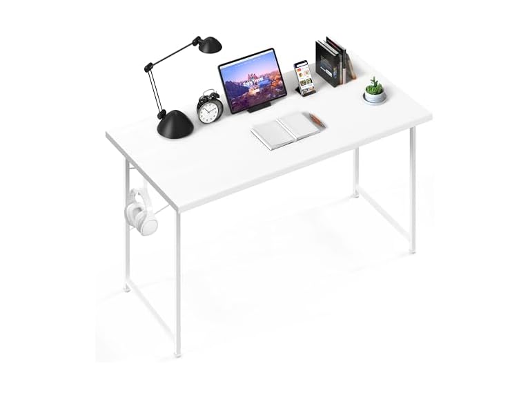 - (1) YSSOA Small Space Writing Desk with Headphone Hooks, Modern Simple Design, Suitable for Study, Home Office and Living Room - Choose Color