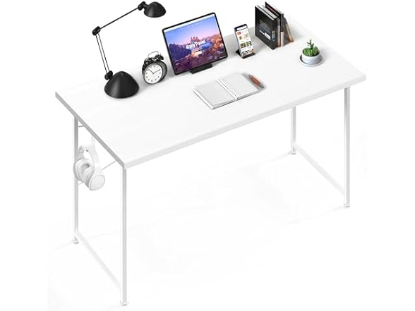 - Durable and Spacious: Crafted with a sturdy metal frame, this desk provides stability for everyday use. The spacious tabletop accommodates your laptop, books, and study essentials.