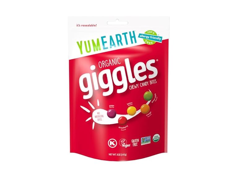 - ASSORTED FRUIT FLAVORS: YumEarth Giggles are an allergy-friendly twist on a classic fruity candy in your favorite flavors (Lemon, Strawberry, Orange, Grape, and Green Apple) with no artificial dyes or high fructose corn syrup.