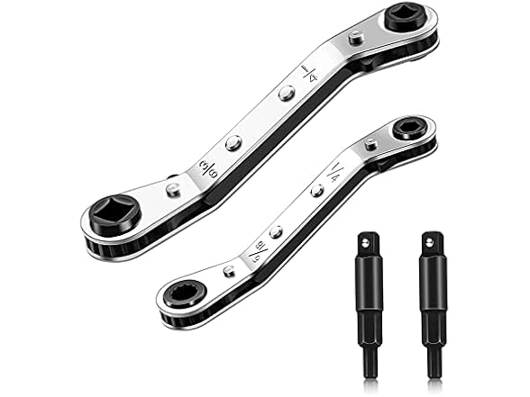 - HVAC RATCHET WRENCH:The air conditioning tools are made of alloy steel, which is sturdy and durable; the ratchet structure can use this wrench to easily turn them in a small space to avoid falling into narrow places, such as the abyss behind the walking cooler.
