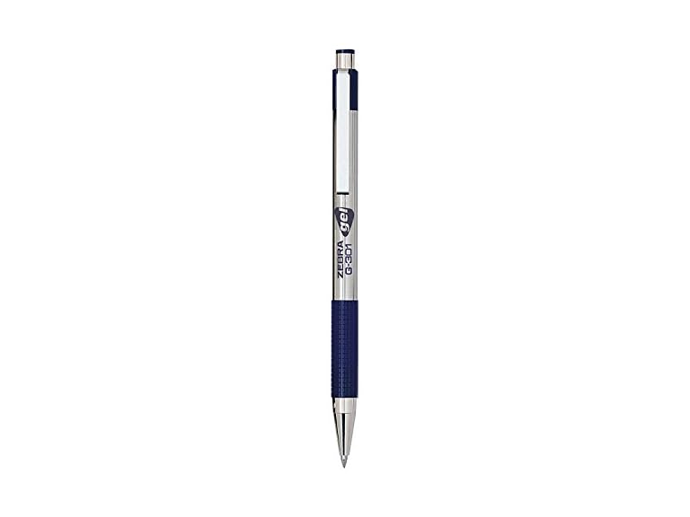 - (1) Zebra Pen ZEB41320 G-301 41320 Ballpoint Pen-Medium Point Type-0.7mm Point Size-Refillable-Blue Gel-Based Ink-Stainless Steel Barrel-1 Each