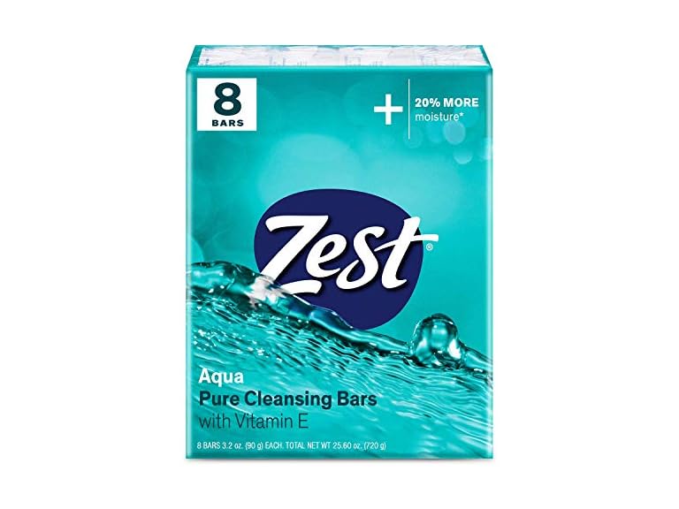 - RICH IN MOISTURE and VITAMIN E: Zest Aqua soap bars are enhanced with 20% more rich moisture and Vitamin E so your skin is left cleansed, soft, invigorated, and shower-fresh as you revive your senses every morning.