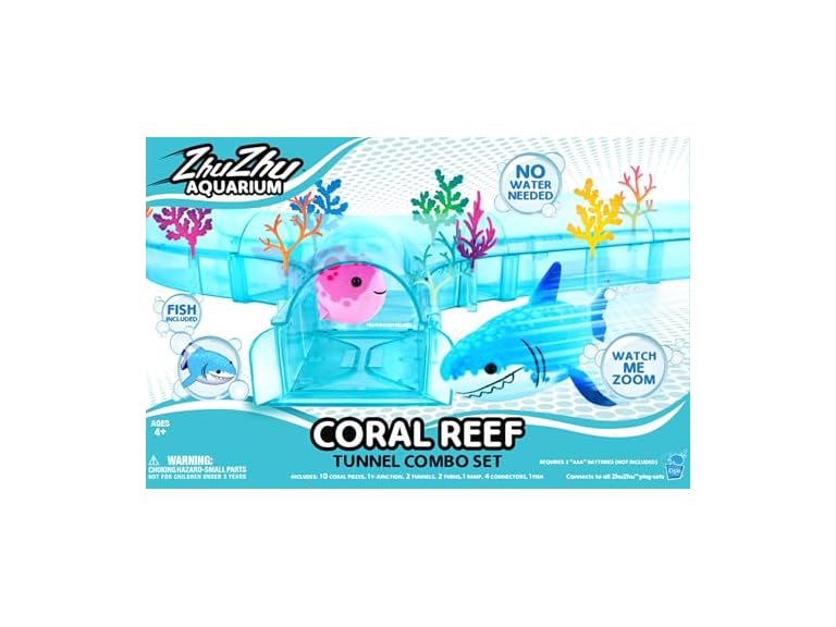 - INTERACTIVE AQUATIC FUN: The Coral Reef Tunnel set is the perfect addition to your Zhu Zhu Aquarium collection adding even more twists and turns for your Zhu Zhu Fish (shark included) to explore!