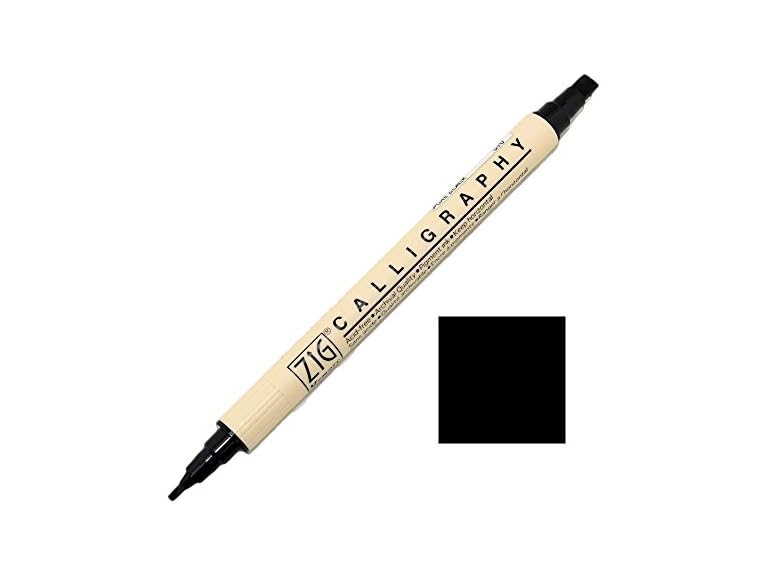Zig Memory System Calligraphy Marker possess distinctive qualities for every crafter. With its blending qualities, you can produce personal paper craft projects of the highest quality. These twin-tipped markers are so versatile in use - not only you can create lettering styles for both titles and journaling on your scrapbook pages and cards, but also intricate flowers and other motifs that finishes off projects nicely. It has 2 mm tip and 5 mm tip. These markers are acid free, water proof, pigment ink which is photo-safe and archival quality. This marker is most suitable for marking on paper and suitable on rubber stamp. Dual tipped markers must be stored in a horizontal position, if they are not positioned correctly this will result in one of the tips becoming dry and un-useable.