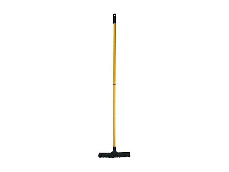 The versatile Zippi Broom, suitable for both indoor and outdoor use, effectively removes cat hair, dog fur, and dirt from a wide range of surfaces like hardwood floors, tile, carpet, rugs, linoleum, and concrete. Its soft, natural rubber head acts as a pet hair magnet, gently lifting dirt without scratching surfaces. For embedded pet hair in carpets, use short, sharp strokes to bring hair to the surface. Even specialized pet hair vacuums may struggle to match the Zippi Broom's performance. Flip the broom to use its all-purpose rubber squeegee side for cleaning hardwood floors, picking up dirt and dust effortlessly. It also handles spills with ease, leaving no water spots on glass surfaces, making it ideal for windows, glass shower doors, and car windshields.
