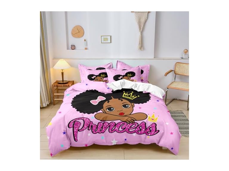 - 【CAN BE A GREAT GIFT】--Cartoon African American Little Girl, these innovative patterned bedding sets will elevate your bedroom to be fashionable, and full of vitality. It can be given as a gift to family and friends on holidays such as birthday, Christmas, Thanksgiving, Anniversary, Mother's Day, housewarming and New Year, expressing blessings to them. It's best for girls, kids, teens, women, friends, etc.
