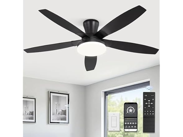 - Ceiling Fans with lights: Our 52 inch ceiling fan has both remote control and APP control. Effortlessly adjust 6-speed settings, dim the light to your preference, or set a convenient 2-hour auto-off timer for energy savings