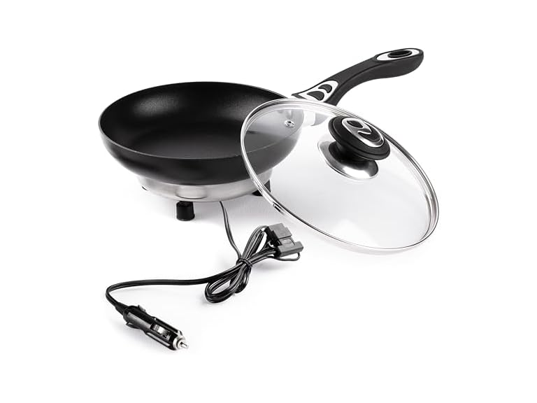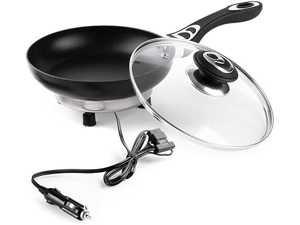 - (1) Zone Tech CT0006 12V Frying Pan with Glass Lid Portable Bl