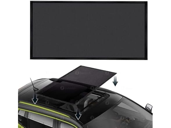 - (1) ZONETECH Car Mesh Sun Roof Magnetic Sun Shade - Premium Quality, Foldable, Cool and Mosquito Blocking Breathable Mesh Sun-Shield, Blocks UV-Rays by Parking Trips Great Protection,Easy Installation