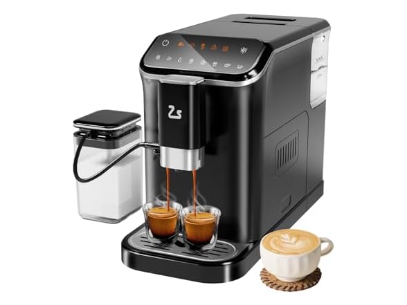 - Zstar Fully Automatic Espresso Machine with Automatic Milk Frother, Professional Espresso Maker with Grinder, One-Touch Operation, Auto-Cleaning, 1.5L Water Tank for Latte, Cappuccino, Macchiato