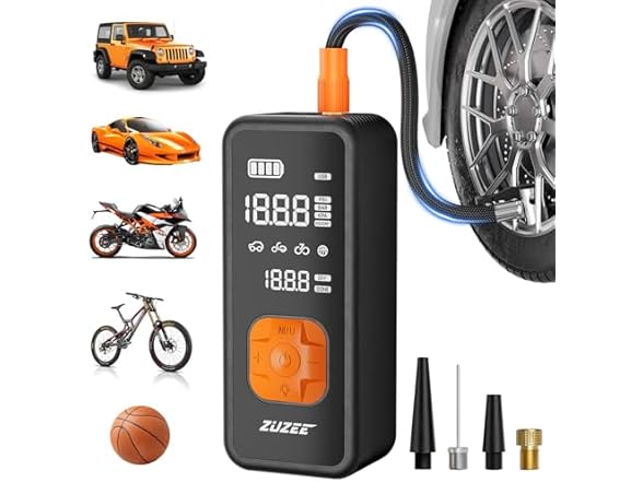 - [Thoughtful Emergency Tool] - This cordless tire inflator can be an emergency tool. In the dark, the multi-function LED light can help you solve vehicle failures, alert pedestrians or send distress signals. It is also an emergency power source for electronic devices. ZUZEE is ready for your road trips and emergencies anytime, anywhere.