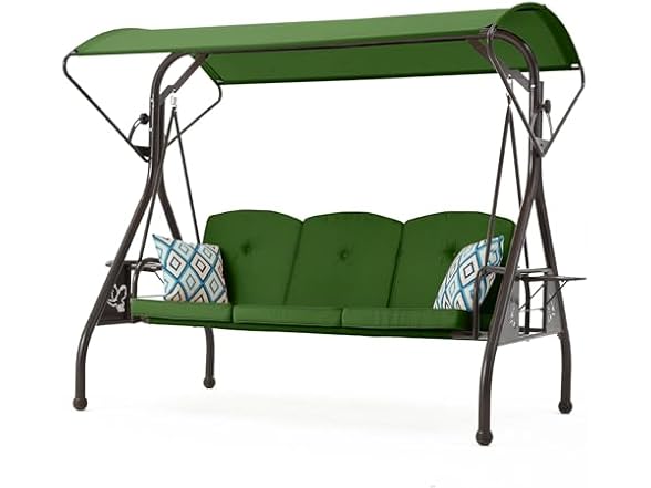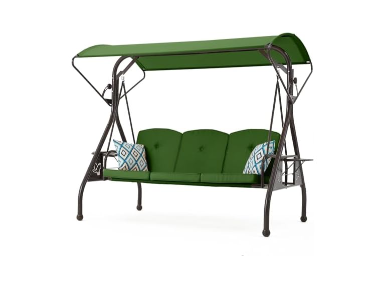- (1) ZZW 8013 800LBS Patio Swing with Canopy 3 Seat Outdoor Porch Swing with Stand w/Cup Holder & Pillow Glider Chair Swing Bed for Patio Backyard Poolside- your choice of color
