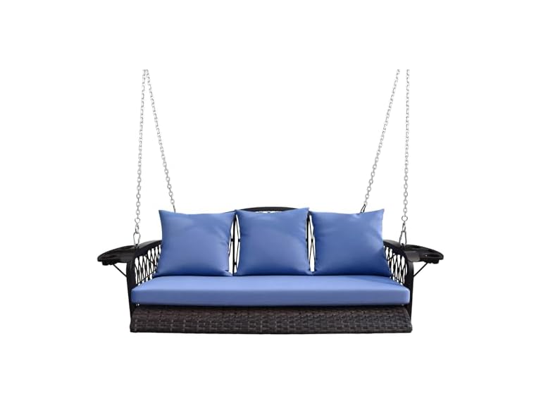 - (1) ZZW Wicker Porch Swing Heavy Duty 900 LBS 3-Seat Outdoor Patio Swing Chair with Cushions & 8.9ft Chains