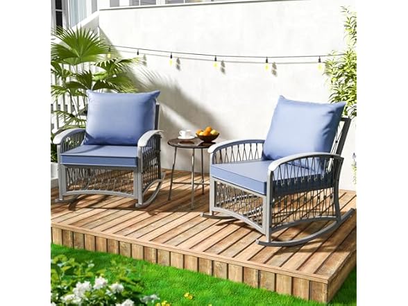 - 【Heavy-Duty Durability You Can Trust】Our patio rocking chairs are constructed with solid, rust-proof powder-coated metal frames and reinforced tubing, capable of supporting up to 350 lbs. Whether it's rain or shine, the frames are built to withstand the elements